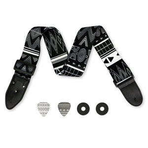 All guitar straps come with two (2) matching guitar picks, strap locker, and extra attachment strings! A $12 value absolutely FREE!