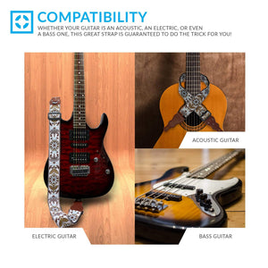 One of our strap's best features is its universal compatibility. Whether your guitar is an acoustic, an electric, or even a bass one, this strap is guaranteed to be a match with your favorite instrument!
