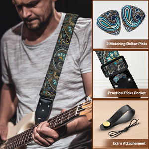 All guitar straps come with two (2) matching guitar picks, strap locker, and extra attachment strings! A $12 value absolutely FREE!