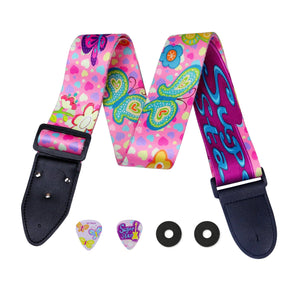 All guitar straps come with two (2) matching guitar picks, strap locker, and extra attachment strings! A $12 value absolutely FREE!